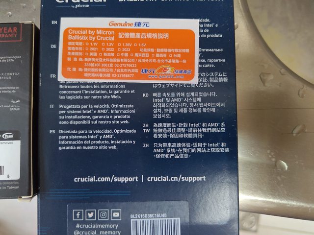 3.美光crucial ballistix ddr4 3600 16gX2