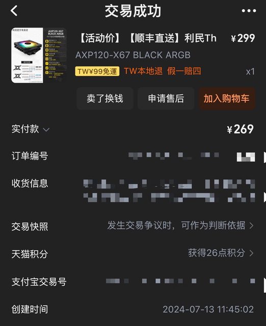 上述散熱器是今年五月到八月間從淘寶購入,視為無保固。除塔體之外配