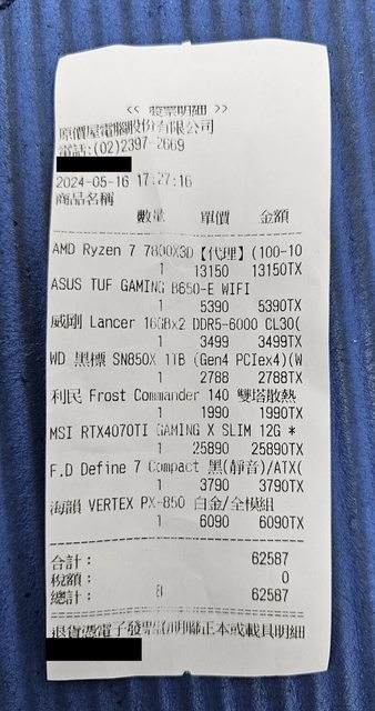 標題[賣/新北/自取] 7800X3D+32G+4070Ti 整機