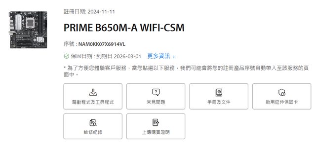 ◎硬體型號: ASUS PRIME B650M-A WIFI-CSM