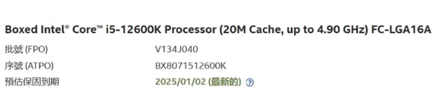 ◎硬體型號: Intel Core i5-12600K