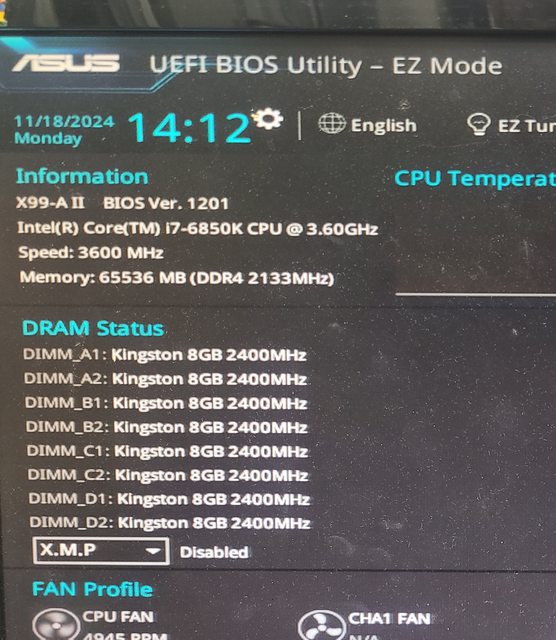I7-6850K + X99-A II + DDR4-2400 8G*8