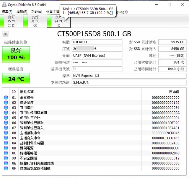 ◎硬體型號: M.2 SATA SSD 500G (美光P1)