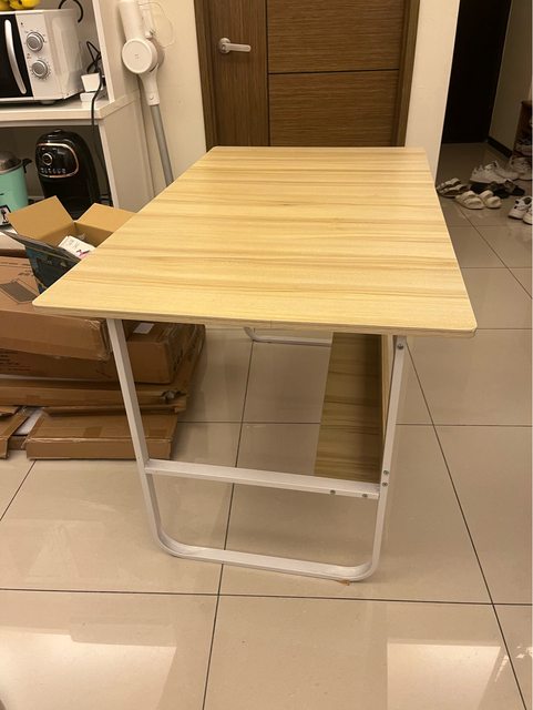 物品項目:淺木色桌面,白色鐵製桌腳