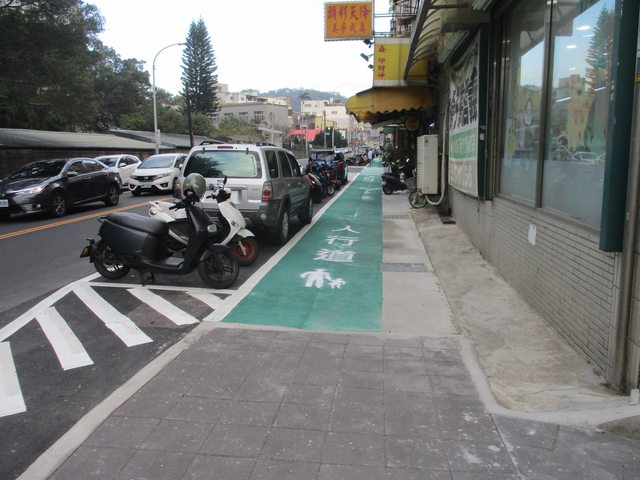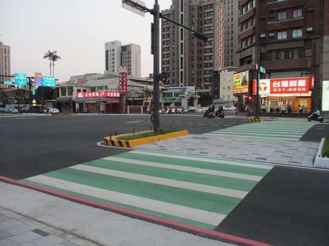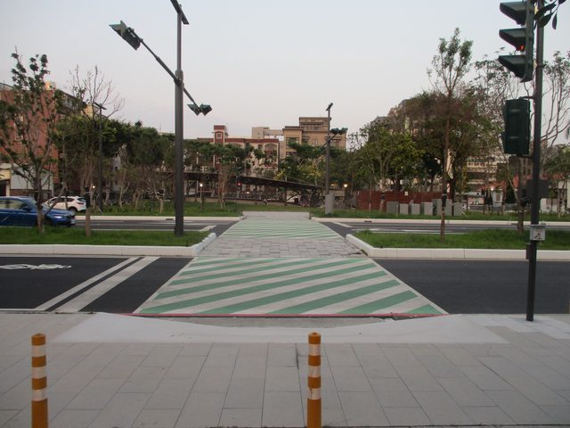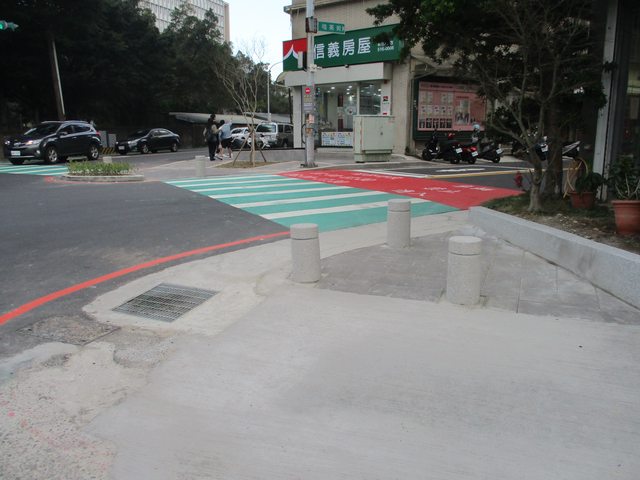 喔喔對 還有這邊 有一小段綠色人行道 原來還有這種故事