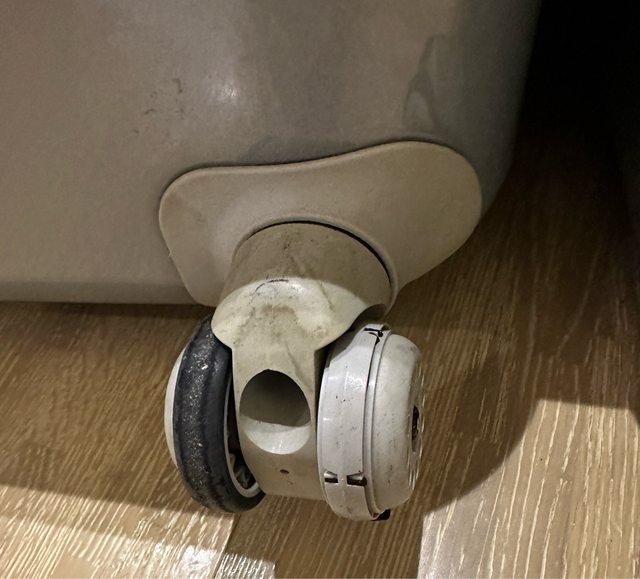有一個輪子的橡膠已脫落需自行送修