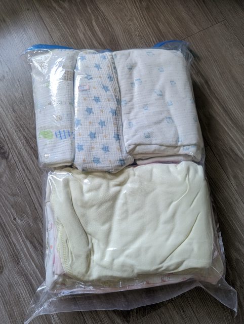 尺寸從新生兒到456個月的都有,請原諒好不容易裝袋的我不想再拆開來 15.包巾數條