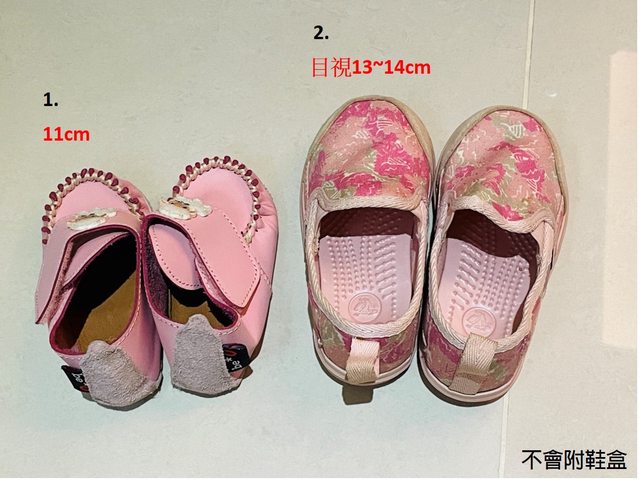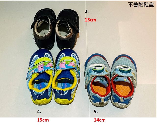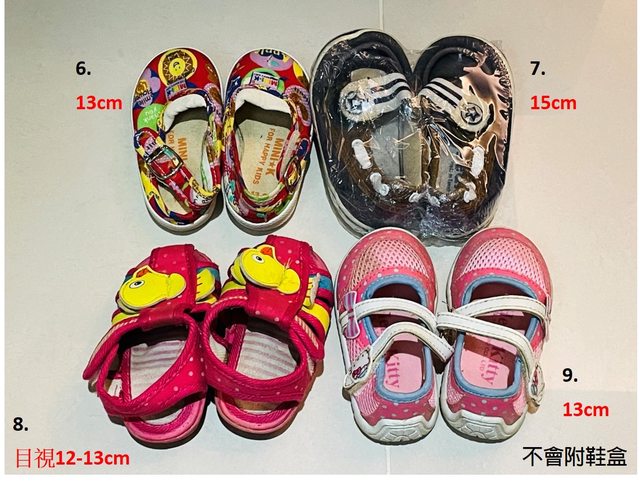 1~9.童鞋,尺寸如圖所標示,爲受贈之二手或三手品,需自行清洗,不附鞋盒,預計以