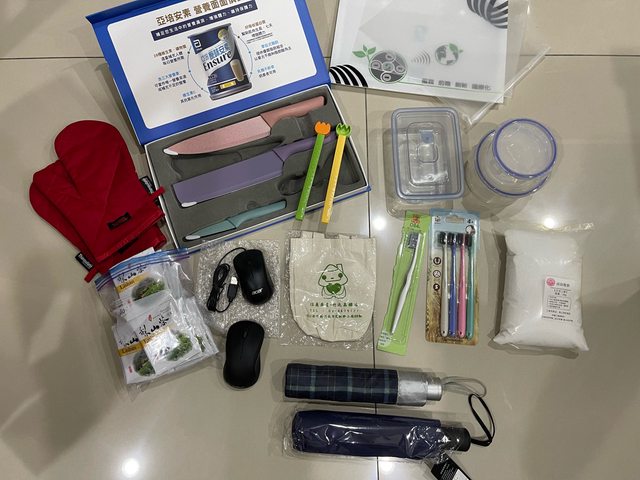 1. 雜物:刀具、茶葉、資料袋、杯袋、保鮮盒、隔熱手套、雨傘、過碳酸鈉、有線&無線