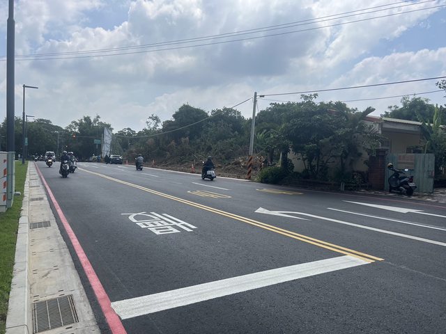 道路拓寬後,也增設人行道提供行人安全通行空間記者。郭政芬/攝影 https://i.imgur.com/Pl93DcY.jpg