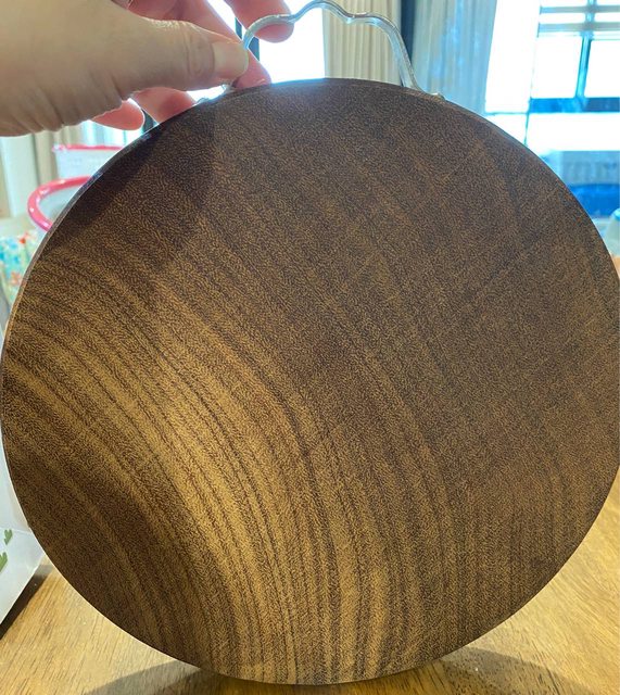 物品項目:廚房用具、礦泉水桶、靠背折疊椅 1)圓型木砧板(厚度3.5公分、直徑25公分)