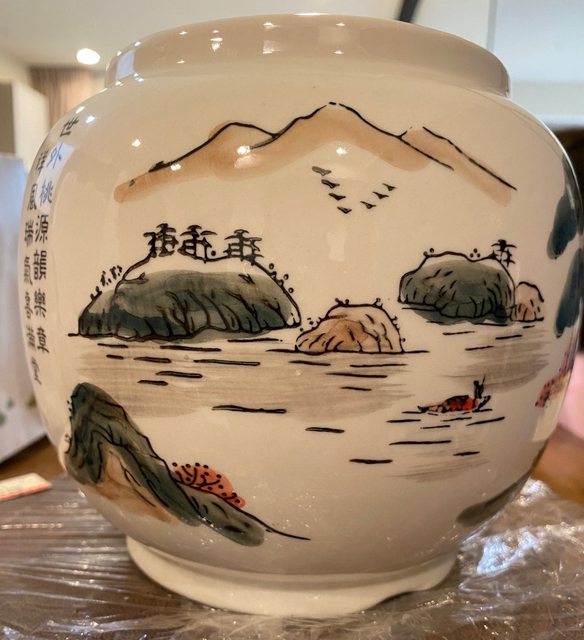 2)瓷盅(高度15公分,正面有圖畫)