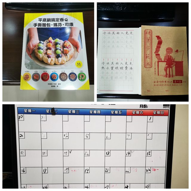 食譜書、練字本(2本不拆分) 、白板(筆墨太久沒擦,有用酒精擦過但無法全清除,欲取
