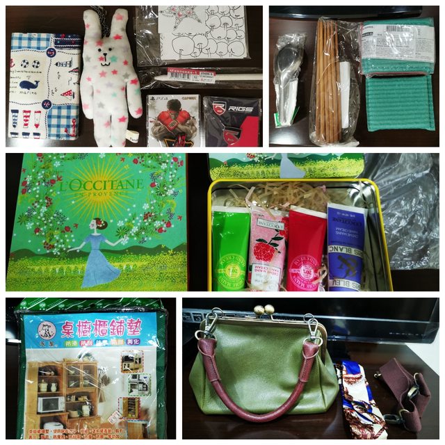 丹護手霜(未使用,過期不拆分)、廚櫃鋪墊(未使用)、女用小包