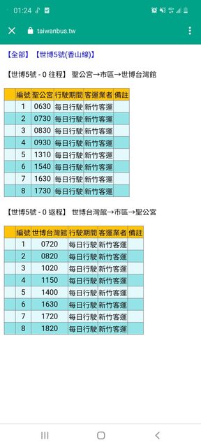 : 所以才會詢問關於從香山濕地發車的世博5號