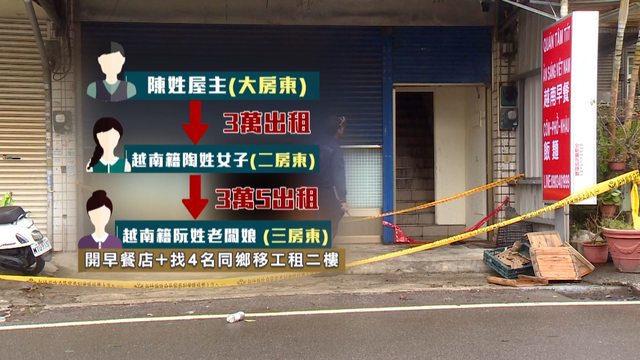 陳姓屋主表示今年11月23日,以3萬元整棟出租給越南籍陶姓女子,陶姓女子再轉租給同