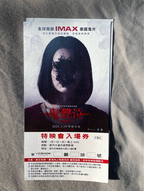 物品項目:1/11(四)19:00,鬼聲泣首映電影票2張,影城為新竹遠百威秀
