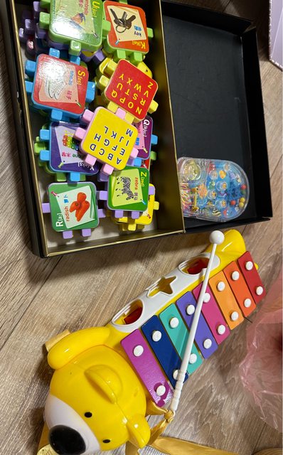 5、幼兒拼圖積木+小鐵琴,鐵琴玩具下方可放相對孔洞造型的方塊