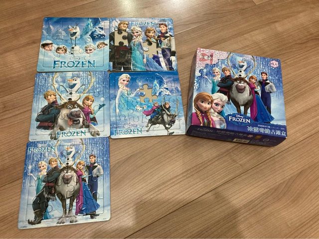 (3)(洽中)冰雪奇緣拼圖五入,但其中兩個有缺片