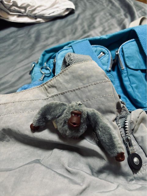 灰色的包包肩帶部分有點磨損,但這款有猩猩吊飾,不介意再來信,謝謝您