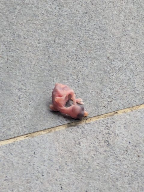 各位版友好,我剛剛在陽台撿到一隻全身沒有毛的雛鳥,附近找不到鳥巢,先用紙箱把他