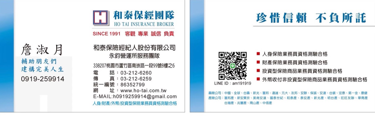 → ilsher : 推薦我的保經,人好,專業~可以先聊&討論規劃個人 06/14 10:31