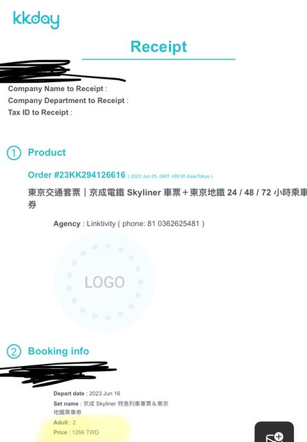 KKDAY購入 單程skyliner+24hr 套票=633/組