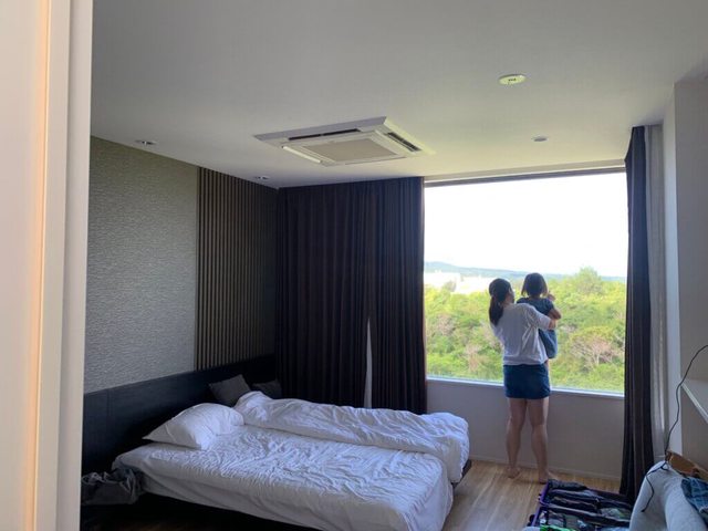這裡的大落地窗,都是有電動窗簾的,