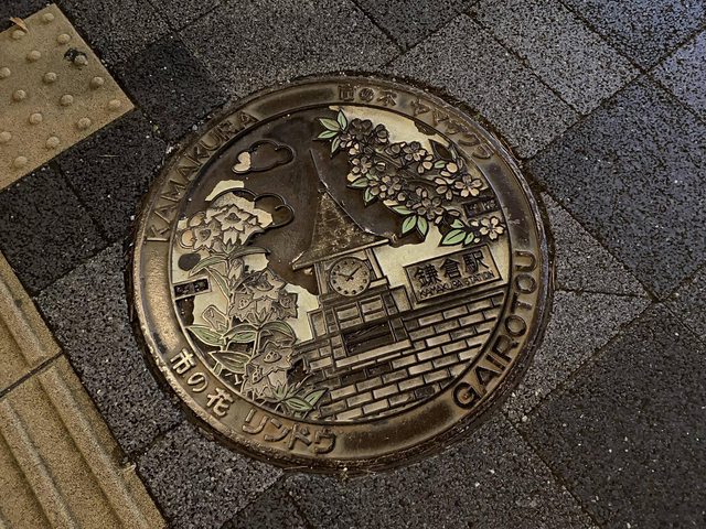 然後又跑到鎌倉車站逛逛,晚上八九點店家都關光光了,只能拍拍井蓋