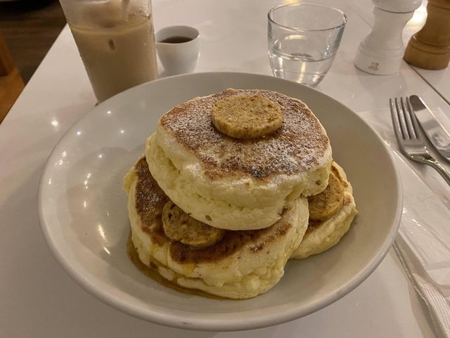 他們只有英文菜單、也沒照片,沒做功課的情況下我隨便亂點,得到應該算招牌的香蕉厚鬆
