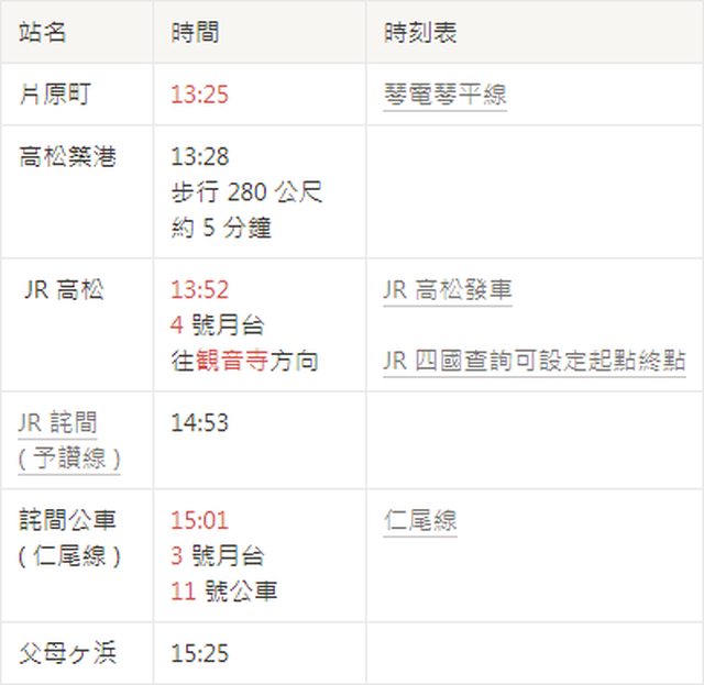 從高松市區出發,基本上就是:琴電 → JR → 公車