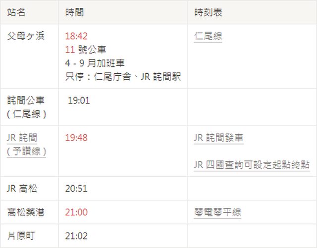 片原町 → 高松築港 → 高松 → 詫間 ( 予讚線 ) → 仁尾線 3 號月台 11 號公車