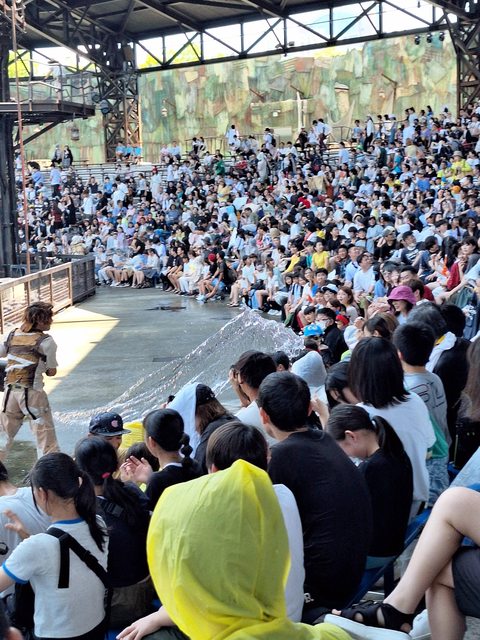 走出園區看到一堆人在附近排隊,我就跟著過去湊熱鬧,後來才發現是水世界表演,如果想