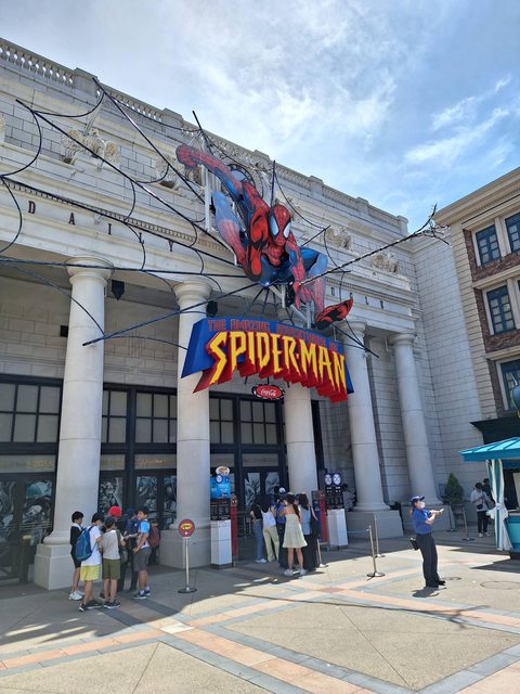 買完小小兵紀念品再趕路過去單人通關蜘蛛人,果然有冷氣的排隊就是讓人能心曠神怡排隊