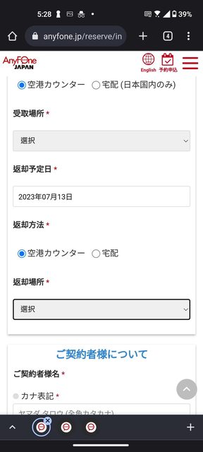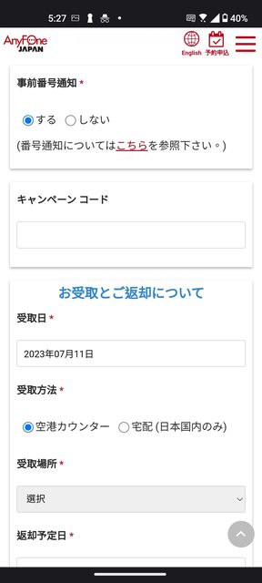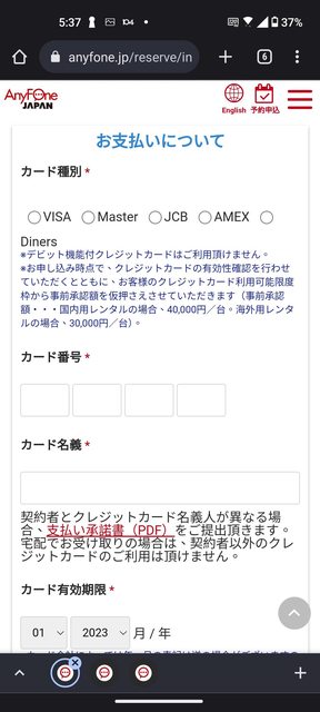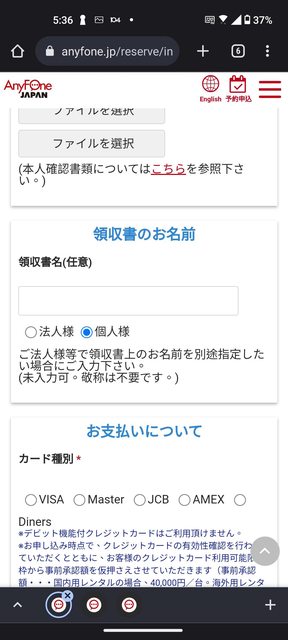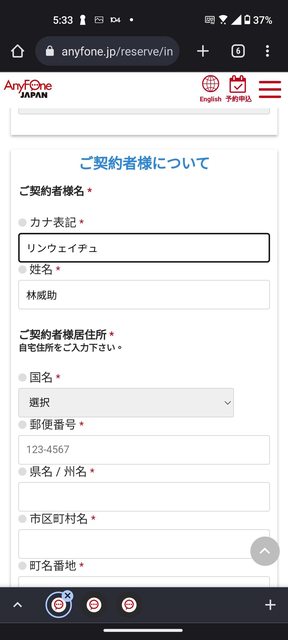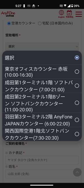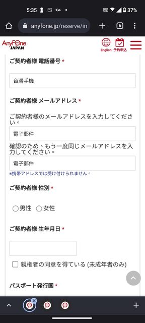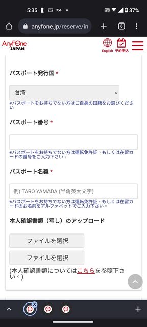 在軟銀Anyfone櫃台出示明細和護照後