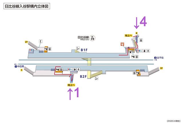 由於我是在日比谷線「入谷」站才開始使用地鐵票,從1號出口進入
