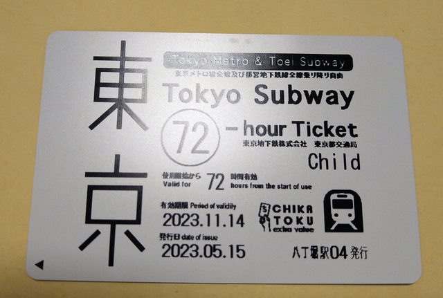標題[讓售] 東京地鐵72小時通票(三日券)兒童票1張