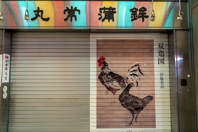 去錦市場拍鐵捲門,之前聽謝哲青提過上面有伊藤若沖的畫作。