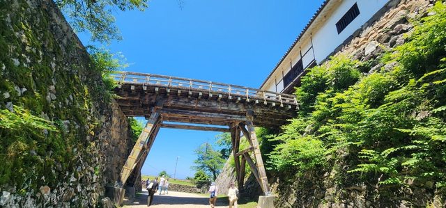 走了一段上坡後可以看到木造廊下橋連接天秤櫓