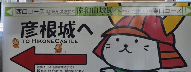 彥根最快約莫40mins,車站內有可愛的彥根貓看板來指引旅者彥根城出口方向!
