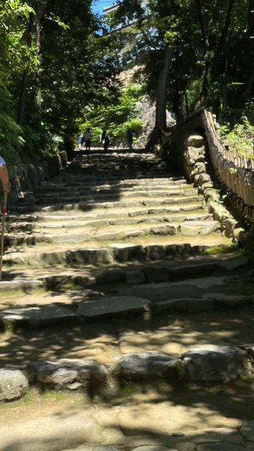 式城堡,所以一出售票口後就是一整個上坡階梯需要花費不少腳力,現場有提供登山仗給