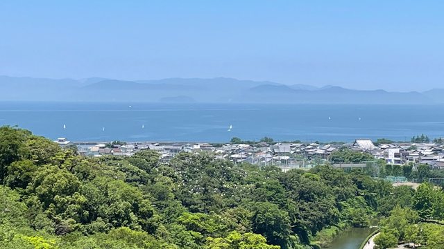 這一側可以眺望琵琶湖~當天湖面上也有不少遊艇與水上活動進行配上對岸的山群形成美