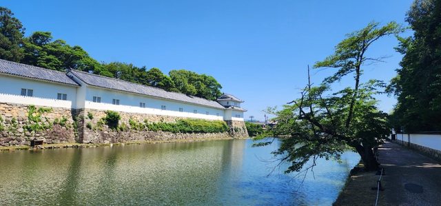 六月的滋賀縣雖然不像台灣濕熱,但炙熱的陽光也是體會到日本初夏的乾熱~走往城堡護