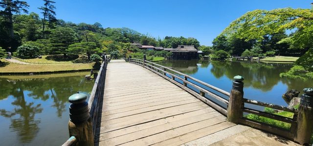 下山後參訪由第四代藩主井伊直興所建造的私人庭園,屬於迴遊式庭園(類似繞池塘遊庭