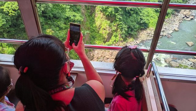 後半段會停在很高的鐵橋上,下面是激流河谷,超酷!