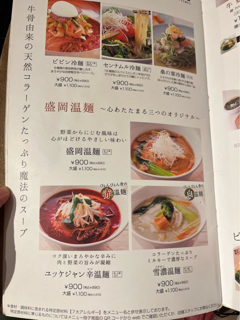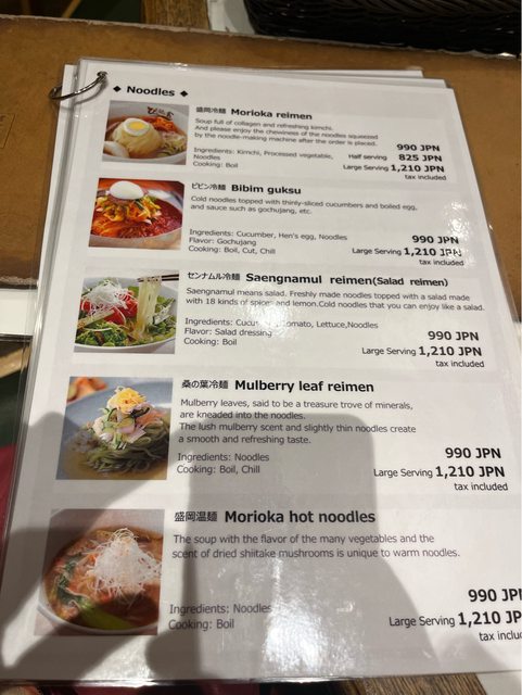 了原本就有辣的品項之外,都可以調整成做不辣的口味。最後我點了經典的盛岡冷麵(含