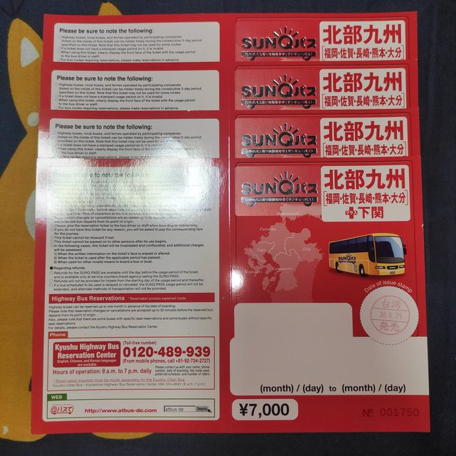 標題[讓售] SUNQ PASS 北九州3日 四張