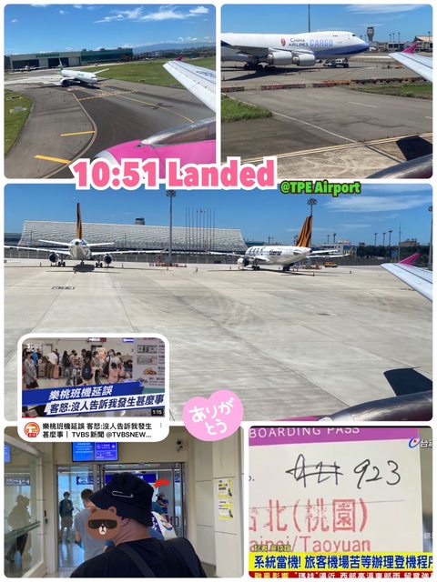趕著下飛機,還在登機門口碰上攝影機拍攝,回家之後才發現原來這趟樂桃當機上新聞
