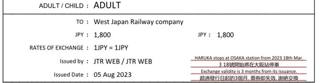 1. 讓售品項:HARUKA 關西空港-京都車站車票