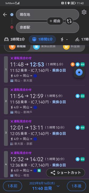 → na1061 : 早上07:33東京出發,3點到新大阪,再坐去岡山,5點,6 08/16 22:08